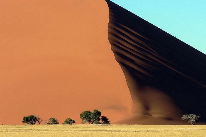 Stille, Raum und Weite sind die wahren Luxusgüter im 21. Jahrhundert. Namibia, das auch der Diamant Afrikas genannt wird, hat von allem im Überfluss. Dazu kommen die himmelhohen Dünen, ein uferloses Meer aus Sand und besonders in der Dämmerung Farbspiele von überirdischer Schönheit.