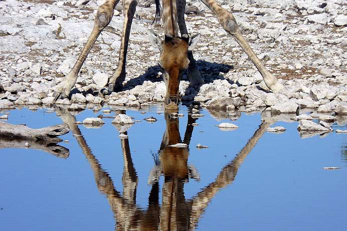 Östlich der Randstufe liegt die Kalahari. Das flache Hochplateau bedeckt gleich mehrere Länder und misst fast 2000 Kilometer im Durchmesser. Botswana liegt fast ganz in der Kalahari, aber auch Sambia, Angola, Simbabwe und Südafrika haben Anteil an der riesenhaften Halbwüste. Wer nach Namibia reisen will, sollte die Kalahari unbedingt einplanen. Charakteristisch sind die roten Dünen und die weißen Salzpfannen, von denen die bekannteste die Etosha ist. Sie bildet des Zentrum des berühmtesten aller Nationalparks von Namibia. Fast alle Namibia Reisen machen am Etosha Nationalpark Station. An den Wasserlöchern des Parks kann man Tiere aus nächster Nähe beobachten, besonders im trockenen Winter. 1500 Elefanten leben hier, 300 Löwen, das bedrohte Spitzmaulnashorn, Leoparden und die verschiedensten Antilopen.