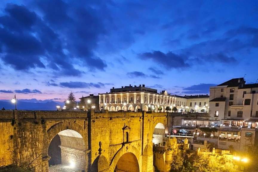 Nach diesem Adrenalinschub fuhren wir mit dem Bus nach Ronda. Die Stadt, die auf einer von tiefen Schluchten durchzogenen Hochebene liegt, bietet einen dramatischen Anblick. Die geführte Tour am Abend führte uns zur berühmten Brücke Puente Nuevo, die den über 100 Meter tiefen Tajo de Ronda überspannt. Ein moderner Kontrast zur jahrhundertealten Stadt war die exklusive Olivenölverkostung in der von Philippe Starck entworfenen Almazara, die wir zuvor auf dem Weg nach Ronda besuchten. Nach dem Check-in im Hotel genossen wir ein gemeinsames Abendessen in Ronda und ließen die spektakulären Eindrücke des Tages Revue passieren.