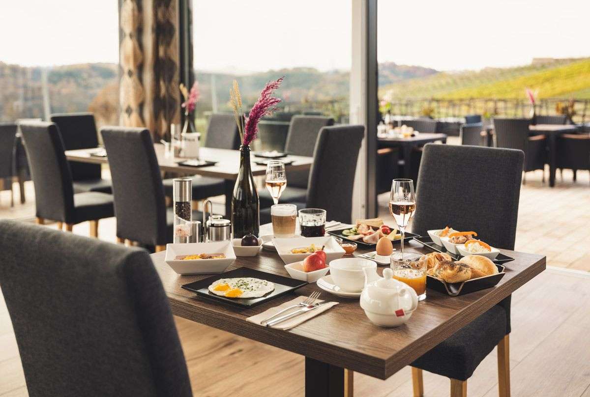 - Auf der Sonnenterrasse am Attersee frühstücken