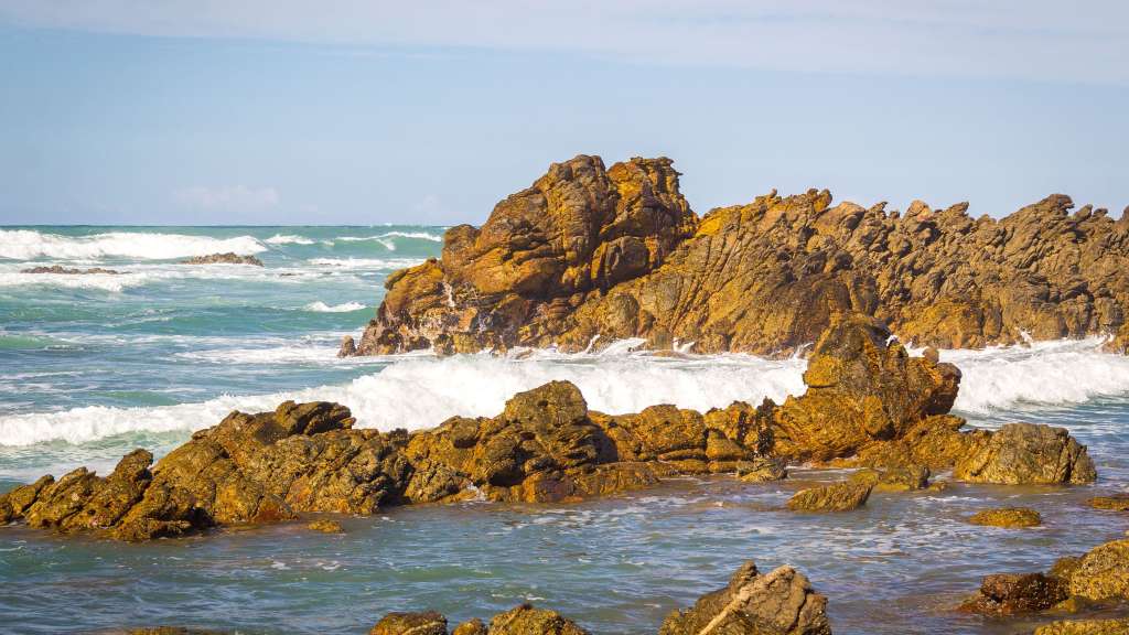 Am südlichsten Punkt des Kontinents, markiert Cape Agulhas zugleich jenen Ort, an dem der Atlantische und der Indische Ozean aufeinandertreffen. Der gleichnamige Nationalpark besticht durch eine raue, flache Küstenlandschaft, die eine enorme botanische Vielfalt mit über 2.000 Pflanzenarten beherbergt. Entlang der Küstengewässer verläuft ein szenischer Wanderweg. Bewacht wird das Kap von einem Leuchtturm aus dem Jahr 1849, dem zweitältesten Südafrikas, der heute ein Museum beherbergt. Über 70 Stufen führen hinauf zur Aussichtsplattform.